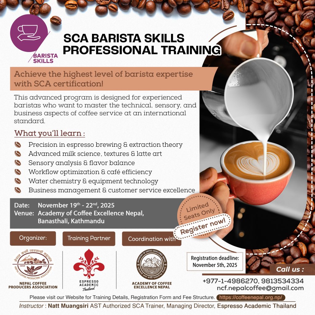 - Venue: Academy of Coffee Excellence Nepal, Banasthali, Kathmandu
